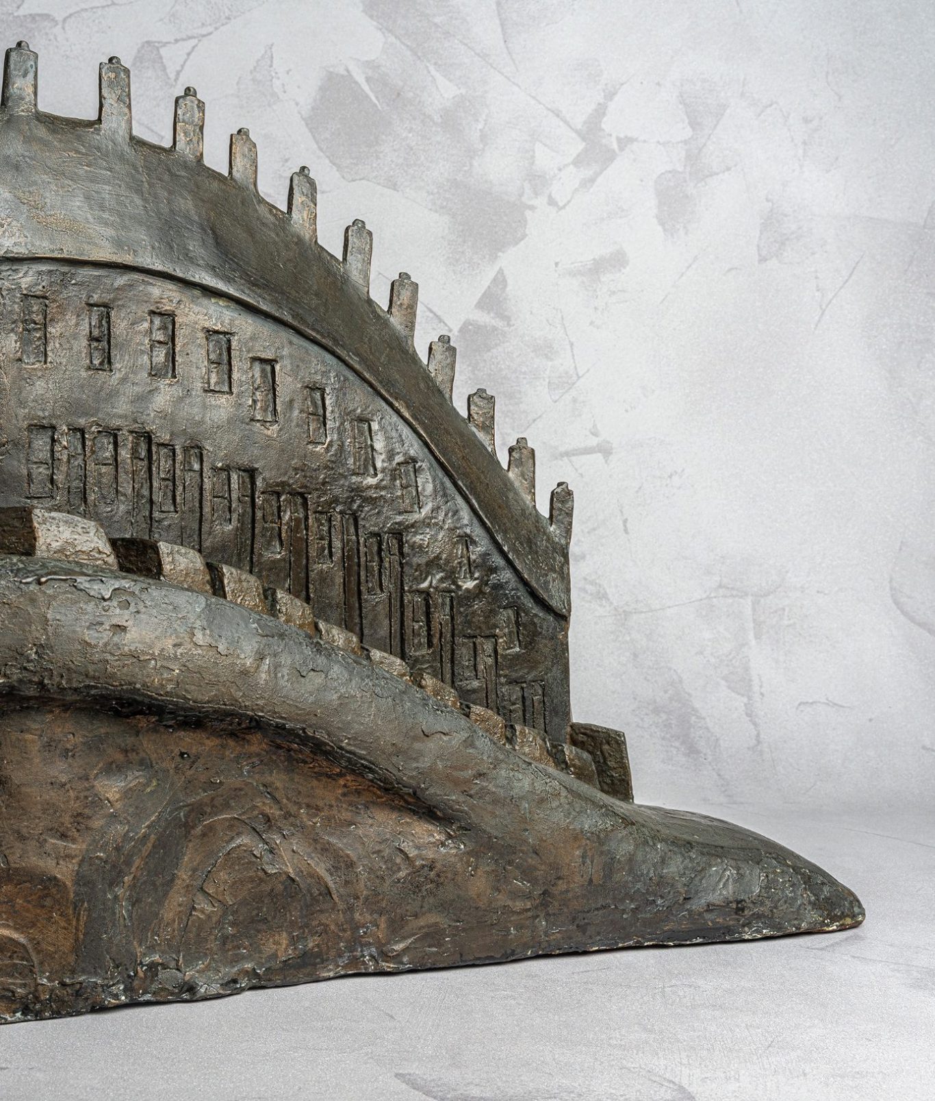The figures are all cast in bronze.  Some streets and housed are in resin bronze."